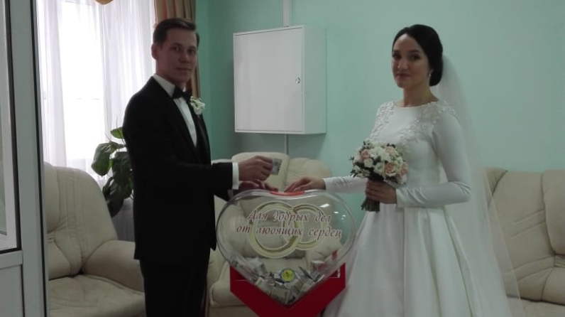 В отделе ЗАГС исполнительного комитета Алексеевского муниципального района установлен куб-накопитель для сбора средств тяжелобольным детям. Посетители и молодожены района регулярно и с удовольствием принимают участие в благотворительной акции «Для добрых дел от любящих сердец». Сегодня молодожены Халитовы внесли свой вклад в это прекрасное дело.