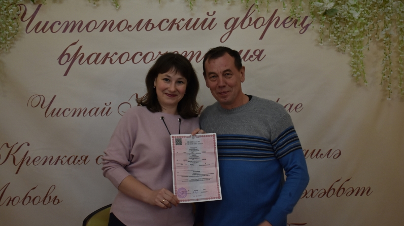 В Чистопольском дворце бракосочетания востребованными стали церемонии бракосочетания в календарные дни с особенным сочетанием цифр. Много внимания этому факту уделяется не только молодыми парами, а еще и теми, кто вступает в брак в более зрелом возрасте. Так случилось и 19.12.2019г., когда по просьбе жителей города отдел ЗАГС Чистопольского муниципального района открыл регистрацию церемоний бракосочетания в особую дату. Сегодня по особому сценарию зарегистрирован брак Натальи и Радика Хуснулгатиных.