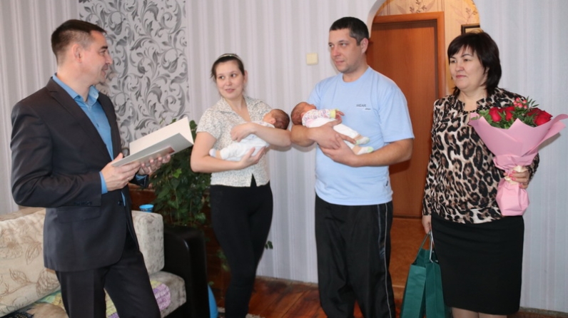 Семью Исмагиловых с новорожденными близнецами поздравили исполняющий обязанности заместителя руководителя исполкома по социальным вопросам Сергей Рузанов и начальник отдела ЗАГС Гузалия Фахуртдинова. Они вручили памятный подарок от руководства района и поздравительную папку от Президента Рустама Минниханова.