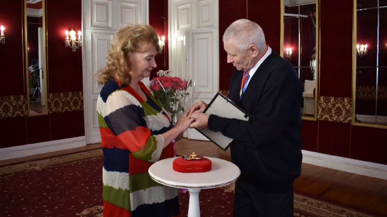 Ровно 50 лет назад они скрепили семейный союз, и с тех пор, в горе и в радости, идут по жизненному пути «рука об руку». По традиции Чистопольского Дворца бракосочетаний супругам напомнили те минуты, когда их объявили мужем и женой. Для Владимира Федоровича и Татьяны Алексеевны вновь прозвучал марш Мендельсона, они дали друг другу клятвы любви и верности, обменялись кольцами и по заведенной традиции расписались в памятной книге почетных юбиляров.