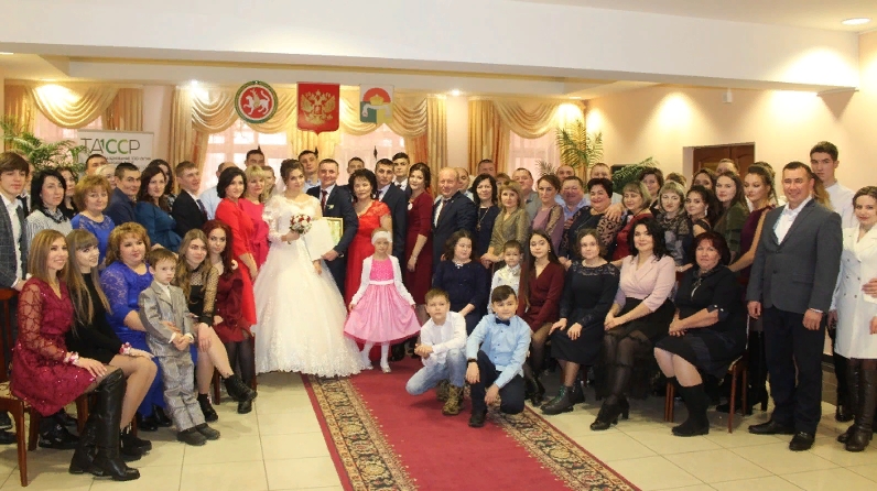 Счастливых молодоженов в торжественной обстановке поздравил Глава района Марат Гафаров. Виновникам торжества Марат Ринатович вручил свидетельство о регистрации брака, поздравительный адрес, памятную медаль по случаю 100-летия ТАССР и памятный подарок, пожелал счастливой и долгой семейной жизни. К теплым пожеланиям присоединилась начальник отдела ЗАГС Альбина Шарафутдинова, родные и близкие.
