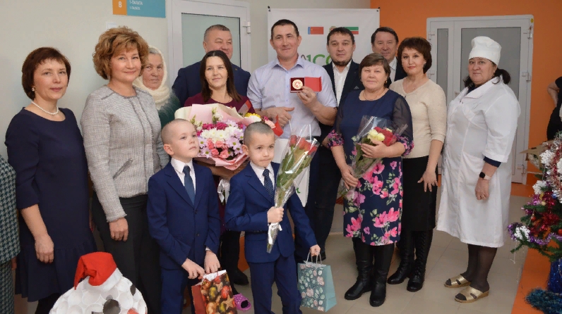 Поздравить семью Мухаметовых приехал Глава района Фарит Хуснуллин, заместитель руководителя Исполнительного комитета Индира Сахипова, главный врач Айрат Галимов, начальник отдела ЗАГС Гульчачак Валишина, начальник социальной защиты Лилия Гильмутдинова, руководитель КЦСОН «Шафкать» Гульнара Хузина, родные и близкие семьи. Фарит Мунавирович поздравил семью Мухаметовых с пополнением, вручил свидетельство о рождении, памятный знак «100 лет образования Татарской АССР», букет и ценный подарок. К словам поздравлений и пожеланий присоединились родные и близкие.