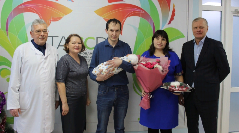 Поздравить семью со знаменательным событием собрались Глава района Р.Х. Гатиятуллин, заместитель руководителя Исполнительного комитета И.И. Хуснуллина, начальник отдела ЗАГС С.Т. Мурсалимова, главный врач Г.В. Алексеев. Глава района Рамиль Хакимуллович торжественно вручил семье свидетельство о рождении ребенка, поздравительные адреса, подарок и цветы. Кроме этого, семья первого ребенка получила памятный знак «100 лет ТАСС».