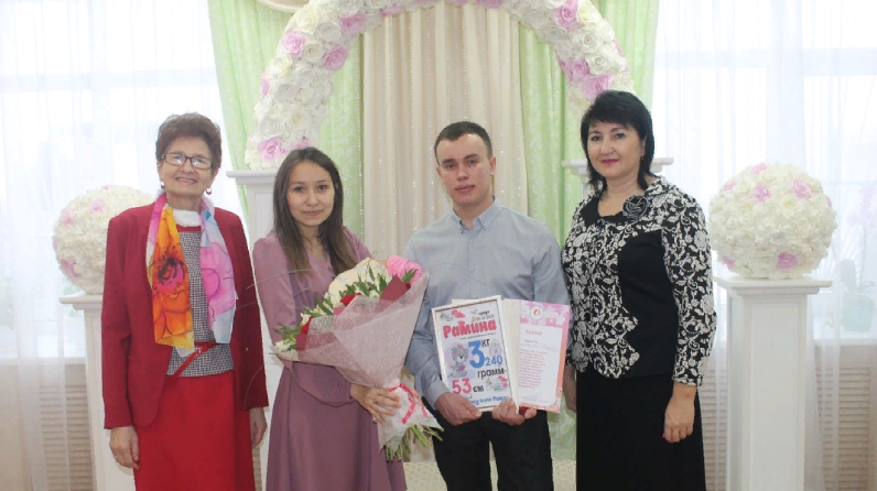 Заместитель главы Арского муниципального района Гарипова Г.Ф., председатель женского совета Арского района Гатауллина А.М., а также сотрудники отдела ЗАГС поздравили счастливых родителей с рождением малышки и в торжественной обстановке вручили первый документ – свидетельство о рождении ребенка, поздравительный адрес главы района Нуриева И.Г. и памятный подарок.