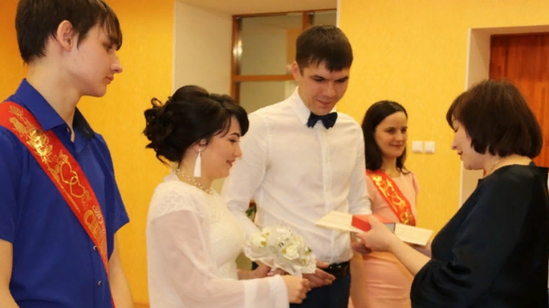 В зале регистрации актов гражданского состояния районного Дома культуры состоялось первое торжественное мероприятие этого года в Ютазинском районе – регистрация брака. Семейный документ – свидетельство о заключении брака – 17 января получила семья Самсоновых из села Байряка.