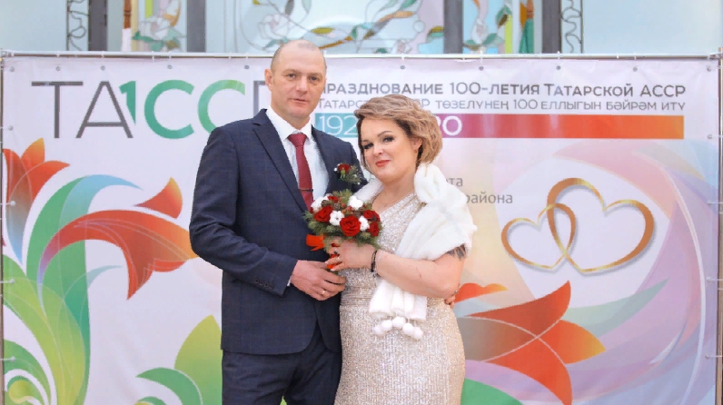 В первый месяц 2020 года в Управлении ЗАГС исполнительного комитета Альметьевского муниципального района зарегистрировано рождение 44 семей. На фото новая семья г. Альметьевск Гориных Алексея и Светланы, которые зарегистрировали брак 31 января 2020 года.