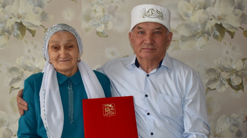 В рамках проекта «Крепкая семья» специалисты отдела ЗАГС района поздравили жителей поселка «Татарстан» - супружескую пару Нурдию Исламовну и Галиахмета Нуриевича Закировых с 55- летием совместной жизни.