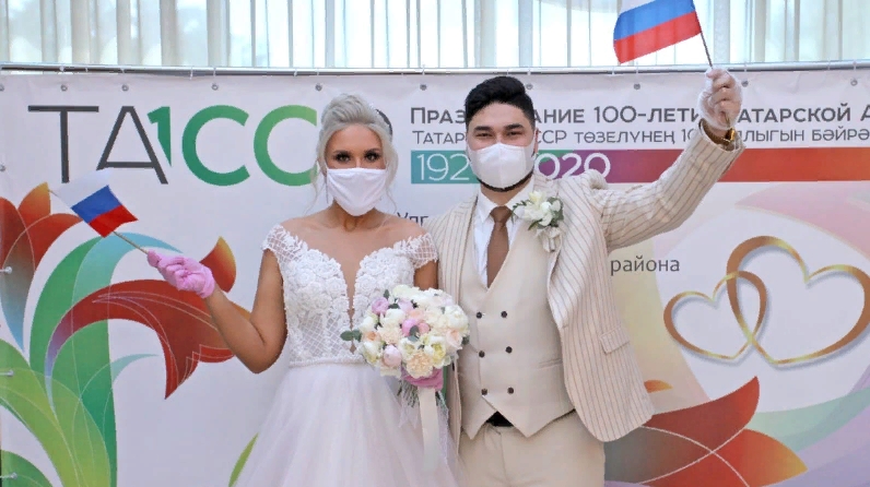 День России – 12 июня – государственный праздник Российской Федерации, отмечается ежегодно с 1992 года в день принятия Декларации о государственном суверенитете РСФСР 12 июня 1990 года. В этот день во Дворце бракосочетаний г. Альметьевск 12 счастливых пар скрепили свой семейный союз.