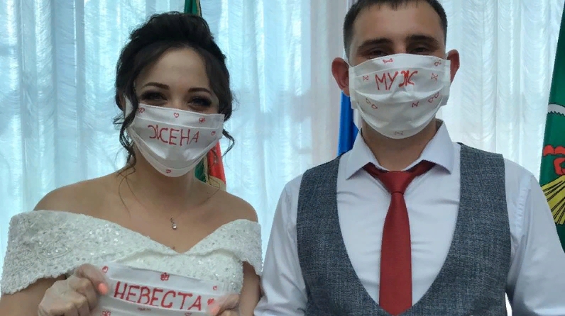 Несмотря на определённые ограничения, которые сегодня действуют в органах ЗАГС, во время регистрации брака Ленар и Виктория нашли возможность показать своим близким торжественную церемонию. Прямую трансляцию для многочисленных подруг невесты из зала Дворца бракосочетания вели присутствующие гости. Не смутил молодых и масочно-перчаточный режим – и к этому вопросу они подошли с креативом! Молодожены пришли в ЗАГС в масках «жених» и «невеста», а после поменяли свои маски на «муж» и «жена».