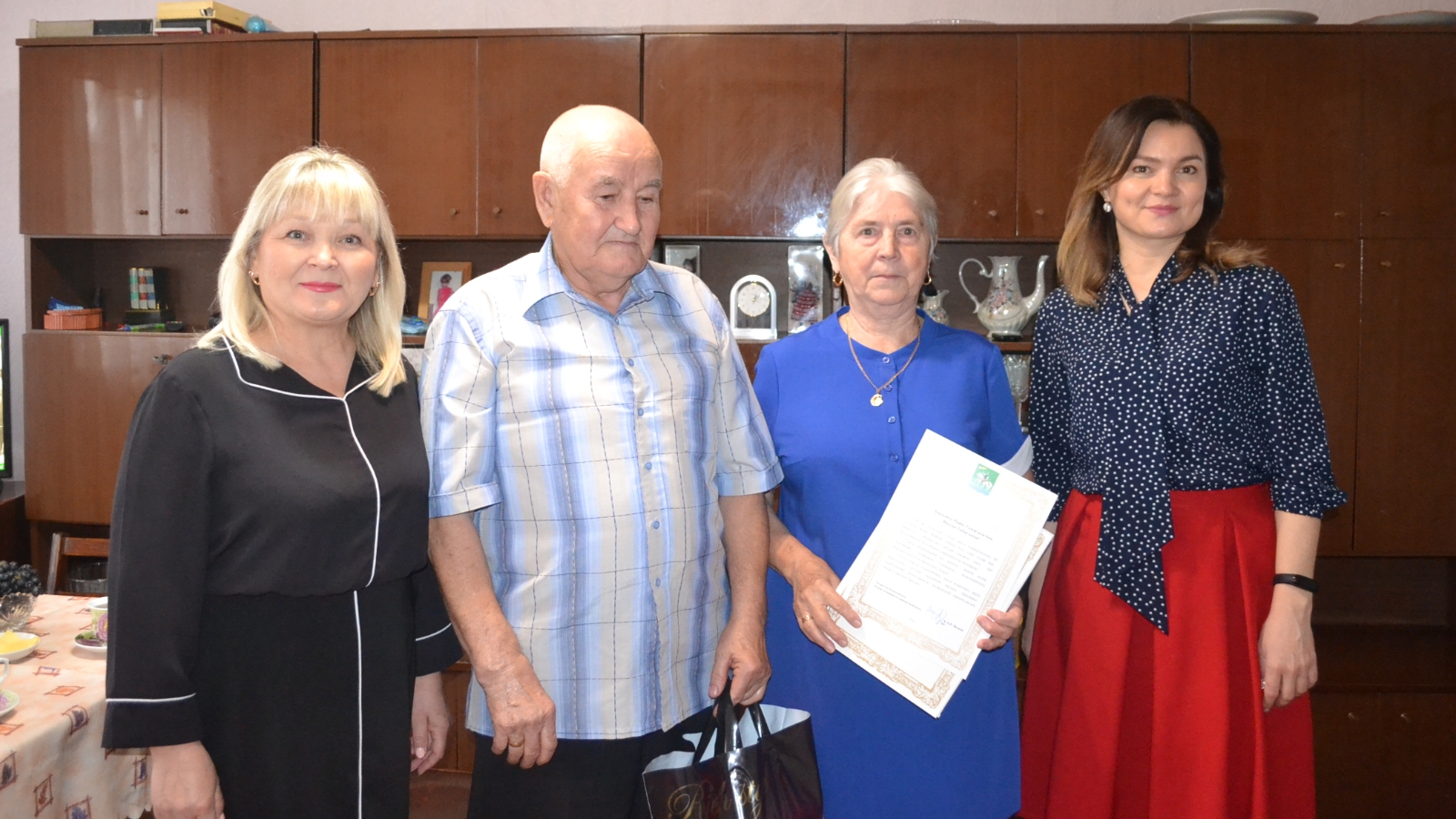 Работники отдела ЗАГС поздравили семью Усмановых с Днем пожилых людей и вручили Благодарственное письмо от имени Главы Агрызского муниципального района РТ Валеева А.Р. и памятный подарок.