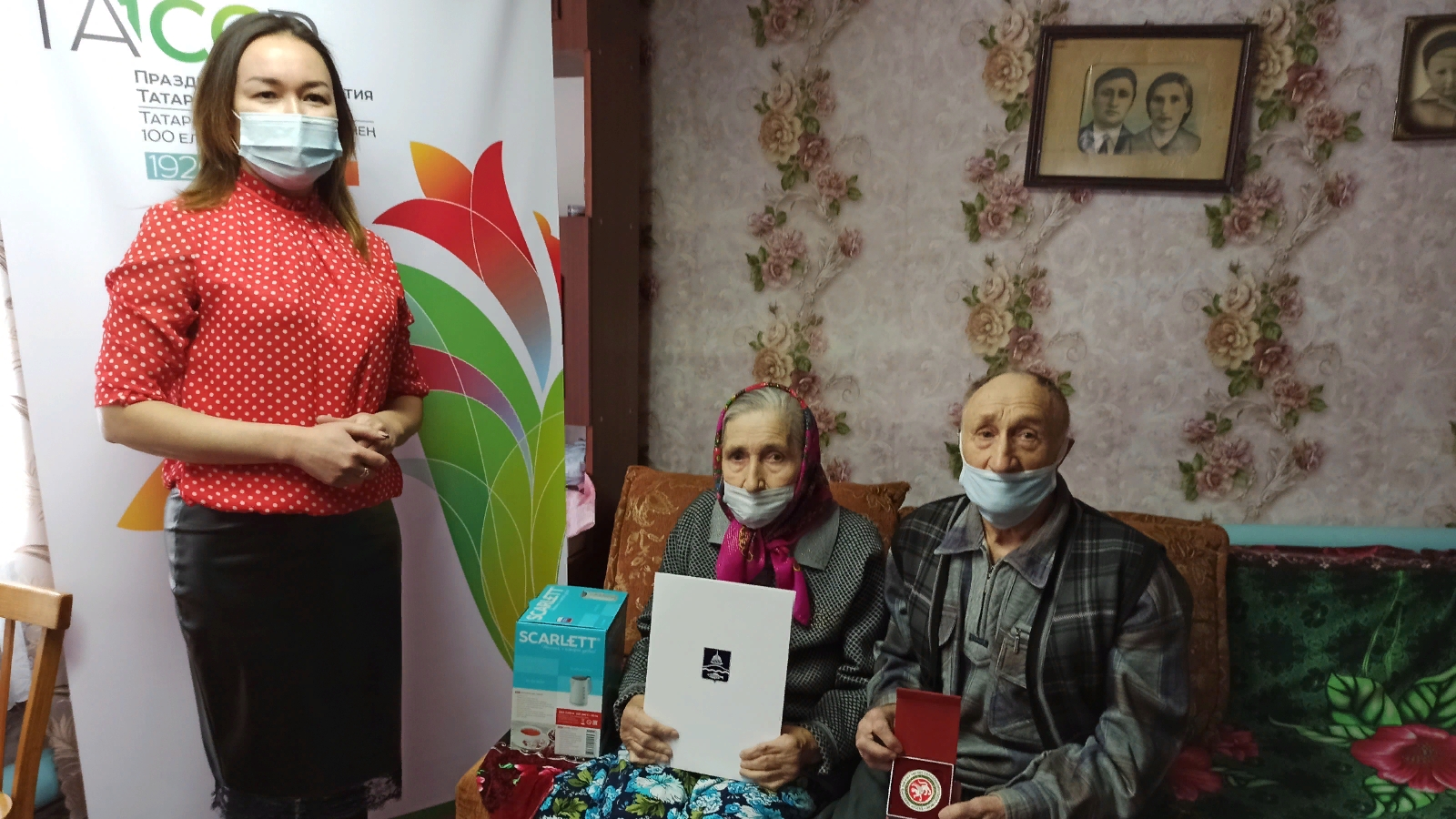 Бриллиантовая свадьба – это редчайшее, очень уникальное событие. Юбиляров в этот день поздравили специалисты отдела ЗАГС Исполнительного комитета Бугульминского муниципального района, вручили Памятный знак в честь 100-летия образования Татарской АССР и поздравительный адрес от Главы Бугульминского района Линара Закирова.