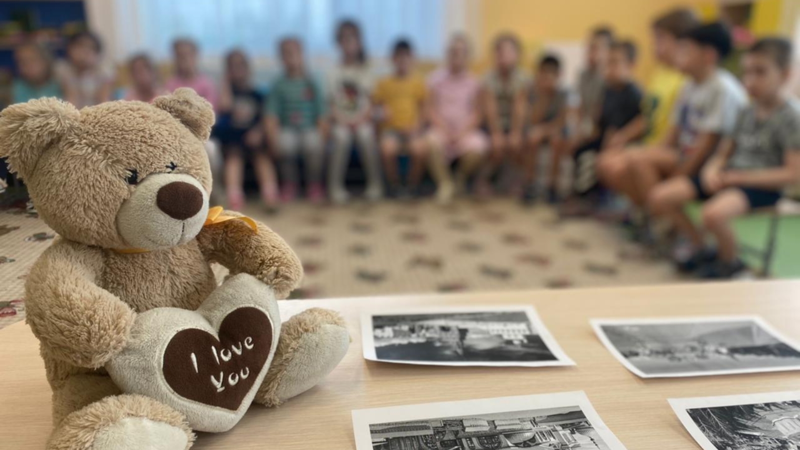 Воспитанники детского сада №99 «Күбәләк» в ходе занятия «Мы живем в Нижнекамске!», посвященного 55-летию города, рассказали сказочному гостю Топтыжке о местных достопримечательностях и устроили для него «прогулку» по улицам.