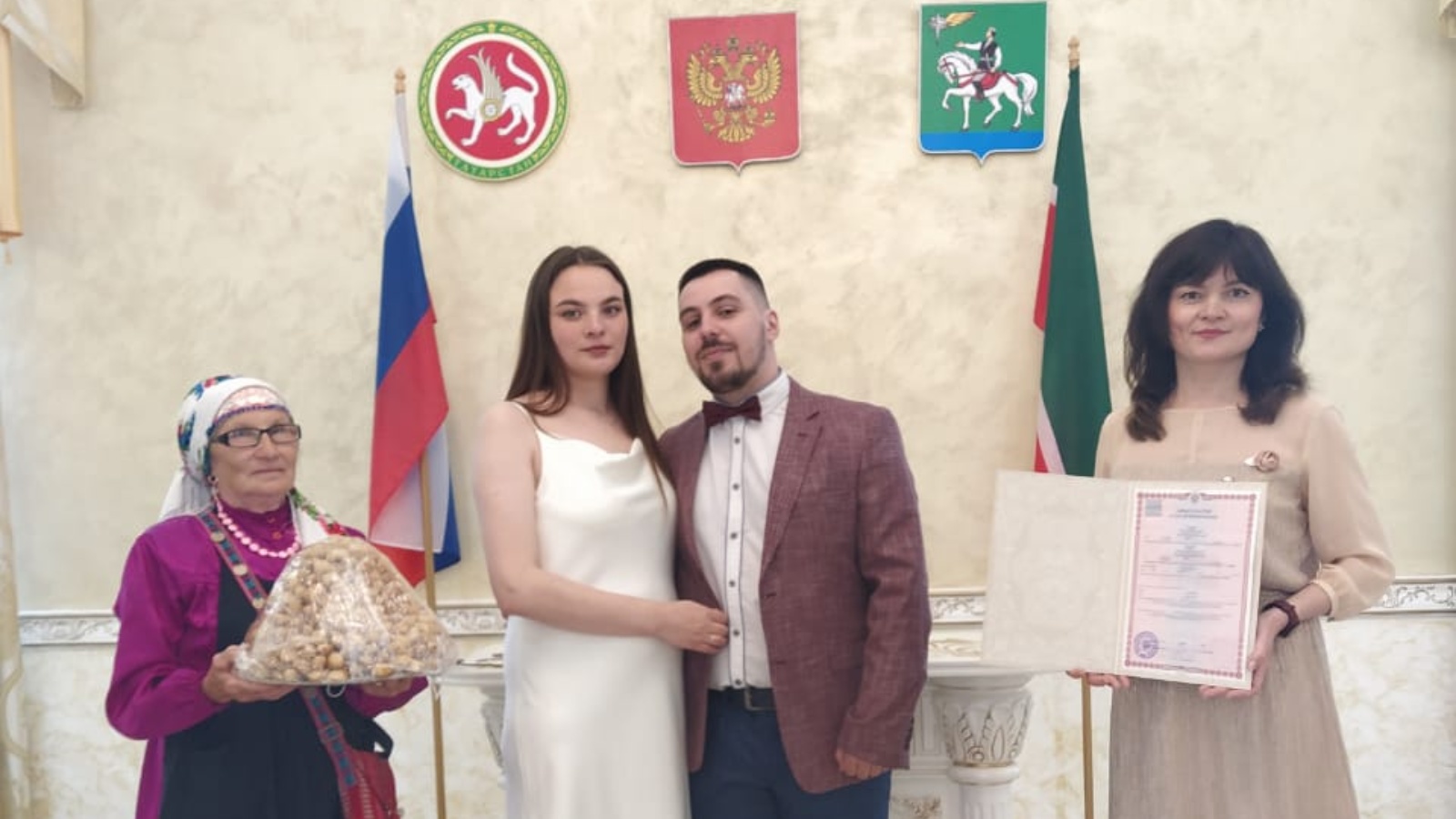 Сегодня 18 июня 2021 года в Агрызе зарегистрирована межнациональная семья Антона и Анастасии Попцовых. Торжественная регистрация брака прошла в роскошном зале, под звуки марша Мендельсона, с гостями, поздравлениями, и соответствующими нарядами.