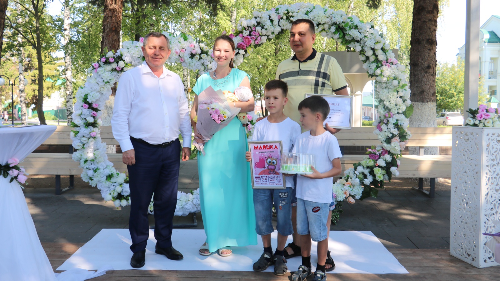 Разделил приятные семейные события и хлопоты Шигаповых и глава района Анатолий Иванов. Он отметил, что эти 10 лет для семьи Шигаповых стали очень плодотворными, вручил новоиспеченным родителям сертификат, гостинцы и цветы.