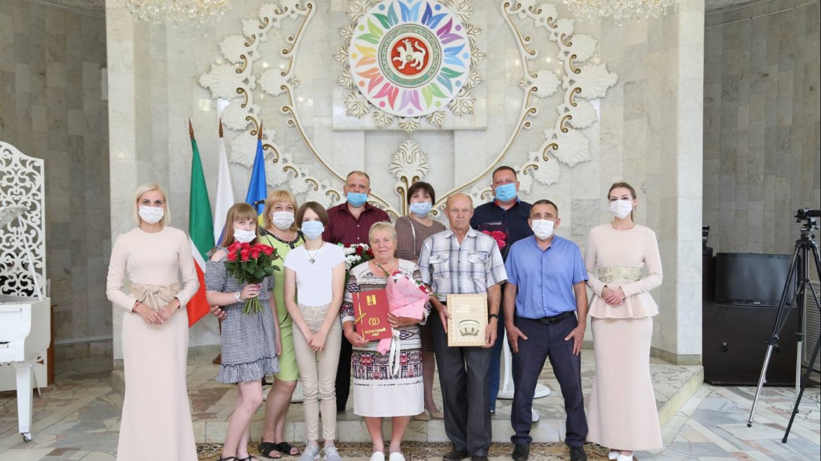 В присутствии родных и близких специалисты Управления ЗАГС вручили Александру Васильевичу и Тамаре Аркадьевне Почетный акт и внесли их имена в Книгу почета.