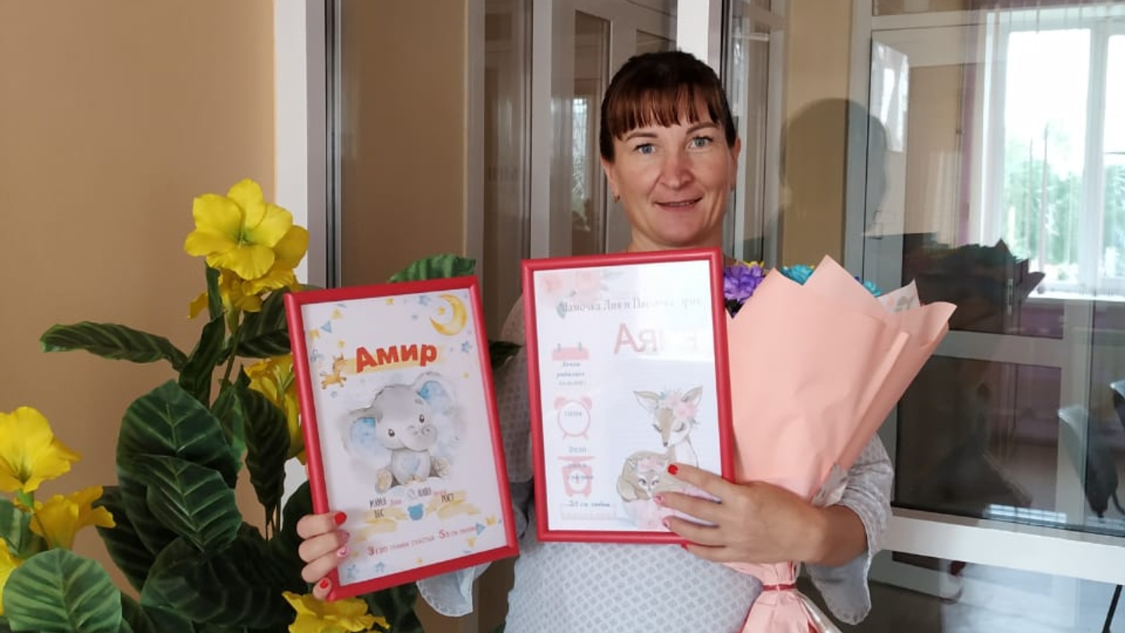 Сотрудники отдела ЗАГС поздравили счастливую маму в роддоме с рождением двойни, пожелали малышам расти здоровыми, крепкими и удачливыми, и вручили первые в жизни документы малышей – свидетельства о рождении, поздравительный адрес от президента Республики Татарстан и памятные метрики для Амира и Аяны.