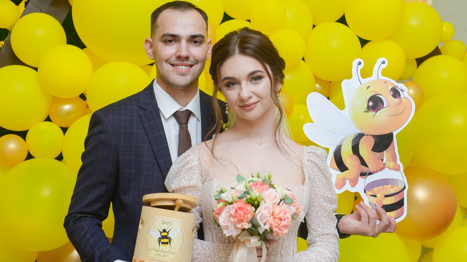 14 августа соединить свои сердца в одно единое целое решили 19 пар молодоженов. Для влюбленных специалисты Управления ЗАГС подготовили праздничную акцию «Сладкая жизнь». Фойе ЗАГСа было украшено пчелками-труженницами и воздушными медовыми сотами, лопая которые женихи и невесты находили свитки с пожеланиями. А что бы, жизнь действительно была сладкой, молодые люди в подарок получили по баночке вкусного меда.