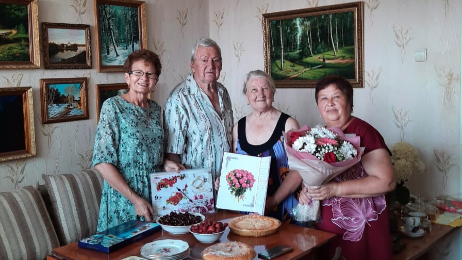 Юрий Михайлович и Нина Степановна уже 55 лет живут счастливы в браке. В домашней, уютной обстановке супругов поздравили председатель женского совета Арского района Гатауллина А.М и руководитель совета ветеранов района Хамидуллина Р.Ш. Они вручили юбилярам поздравительный адрес главы района Нуриева И.Г. и символический подарок отдела ЗАГС.