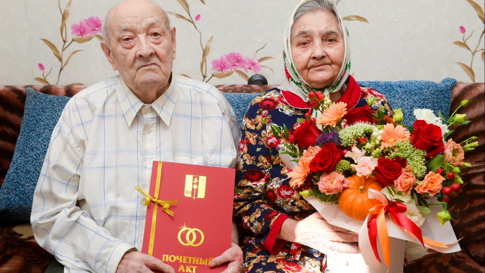 Аркадий Спиридонович и Анна Степановна – пример жизненной мудрости, любви и согласия. Семейной паре отметившей 70-летний юбилей был вручен Памятный знак «100 лет образования Татарской АССР». Так же супруги получили памятные подарки и оставили свои подписи в Книге Почёта Управления ЗАГС.