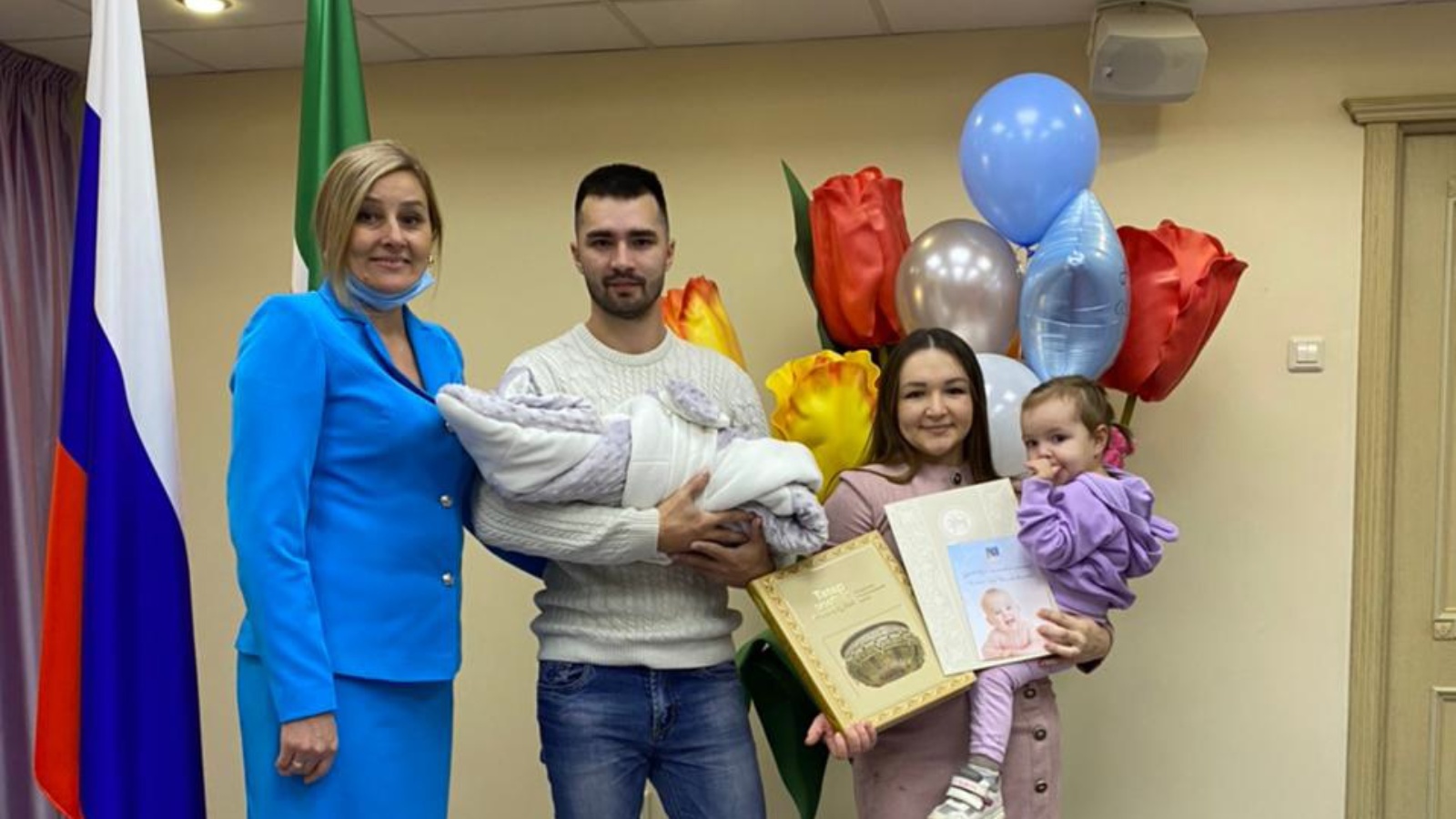 Главный специалист управления ЗАГС Ландыш Назимовна Хафизова поздравила родителей с рождением сына и вручила первый семейный документ – свидетельство о рождении ребенка, поздравительные адреса от имени Президента Республики Татарстан и Мэра города и памятный подарок.