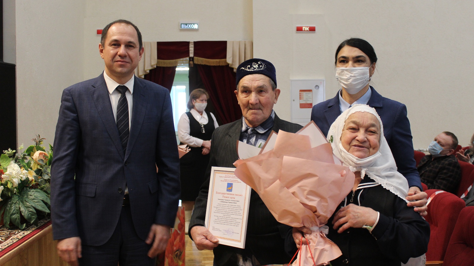 Заместитель Главы Рыбно-Слободского муниципального района Республики Татарстан Ф.Г. Ахметзянова и первый заместитель Министра труда, занятости и социальной защиты населения Республики Татарстан Р.Ф. Валиуллов поздравили семьи и пожелали крепкого здоровья.