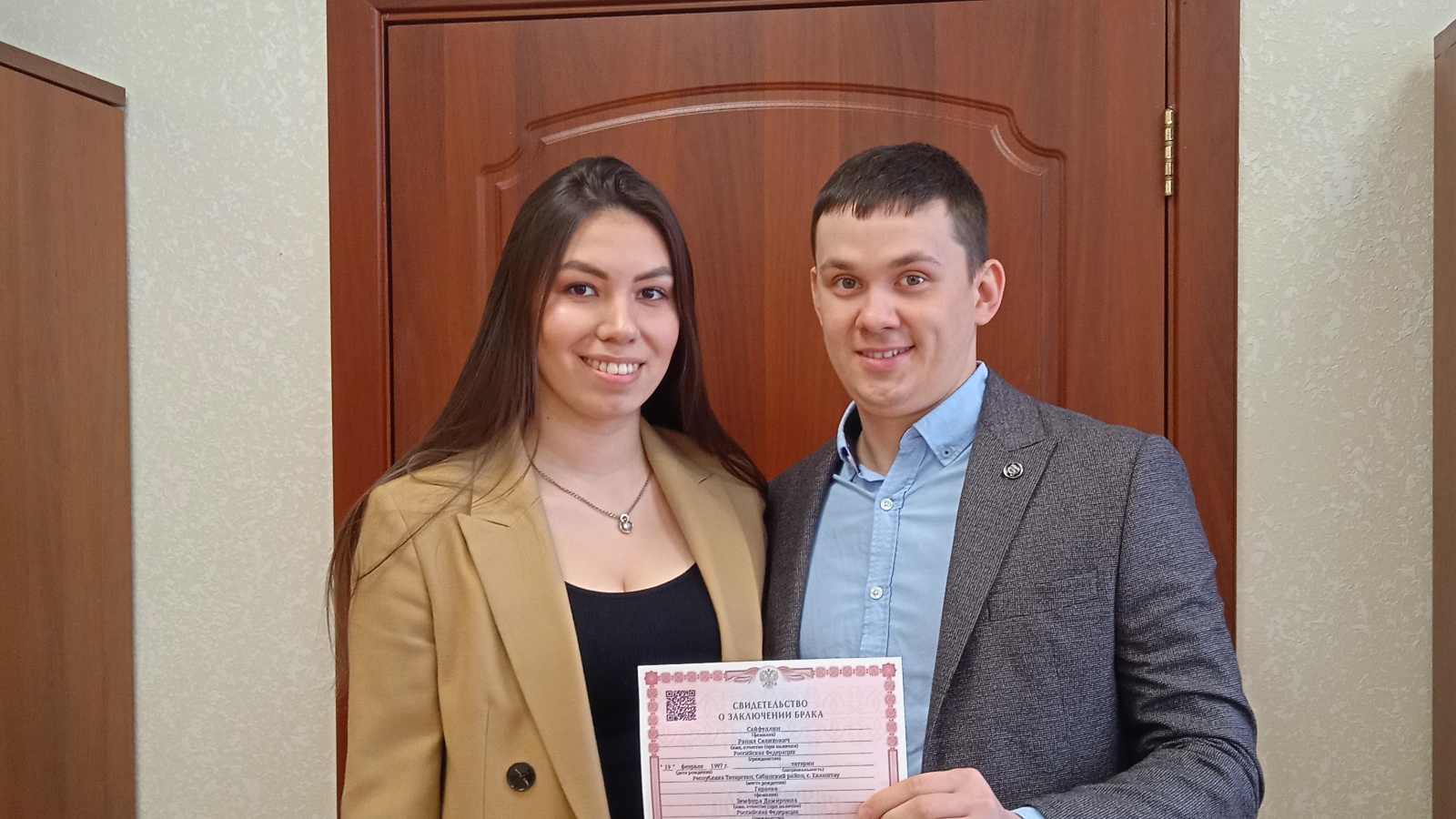 В красивую дату 22.02.2022 г. в отделе ЗАГС исполнительного комитета Сабинского муниципального района Республики Татарстан официально зарегистрировали свои отношения 4 пары: Ранил и Земфира Сайфуллины, Ильсур и Илиса Рахиевы, Ильнар и Дания Латиповы, Ирек и Дина Мингазовы. Начальник Отдела ЗАГС Шайхутдинова А.И. поздравила молодоженов и пожелала молодым семьям благополучия, семейного счастья и конечно же искренней любви.