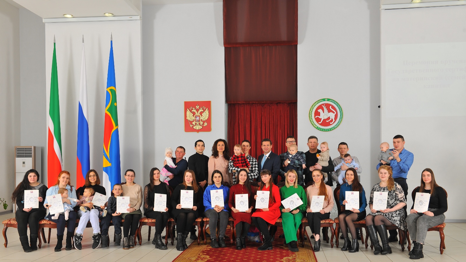 Во Дворце торжеств города Набережные Челны 30 марта 2022 состоялось традиционное вручение сертификатов на материнский (семейный) капитал. В этот день обладателями материнского капитала стали 14 челнинских семей.