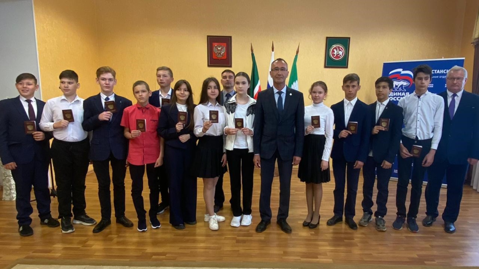 12 молодых людей, отличники учебы, активисты и спортсмены получили из рук главы Ютазинского муниципального района Аяза Шафигуллина свой главный документ – паспорт гражданина Российской Федерации и памятный подарок. Как отметил глава района Аяз Шафигуллин, сегодня особенный день в жизни ребят, ведь отныне они стали обладателями основного документа гражданина.