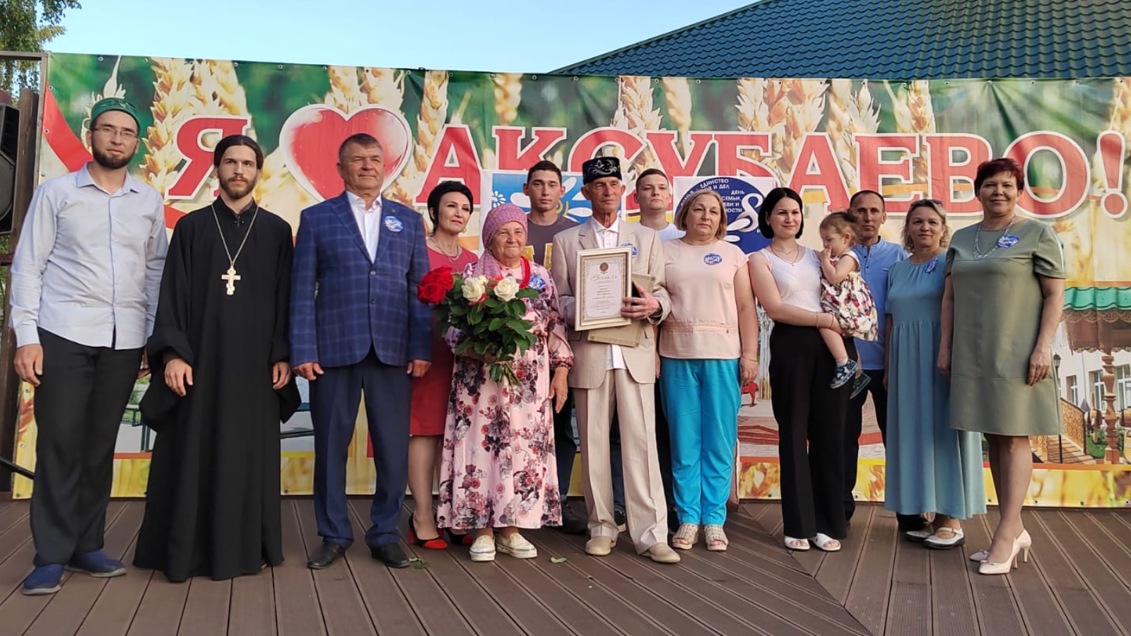 С приветственной речью и поздравлениями к участникам праздника обратился глава района, религиозные деятели и начальник отдела ЗАГС. На главной сцене парка, украшенной плакатами с логотипами праздника, главой района Гилмановым Камилем Камаловичем была вручена медаль «За любовь и верность» семье Гафиятовых Рифнура Гумеровича и Риммы Бакировны, которая пользуется заслуженным уважением своих земляков и является примером крепости семейных устоев. Рифнур Гумерович и Римма Бакировна также поздравили присутствующих с замечательным праздником и поделились секретами семейного благополучия.