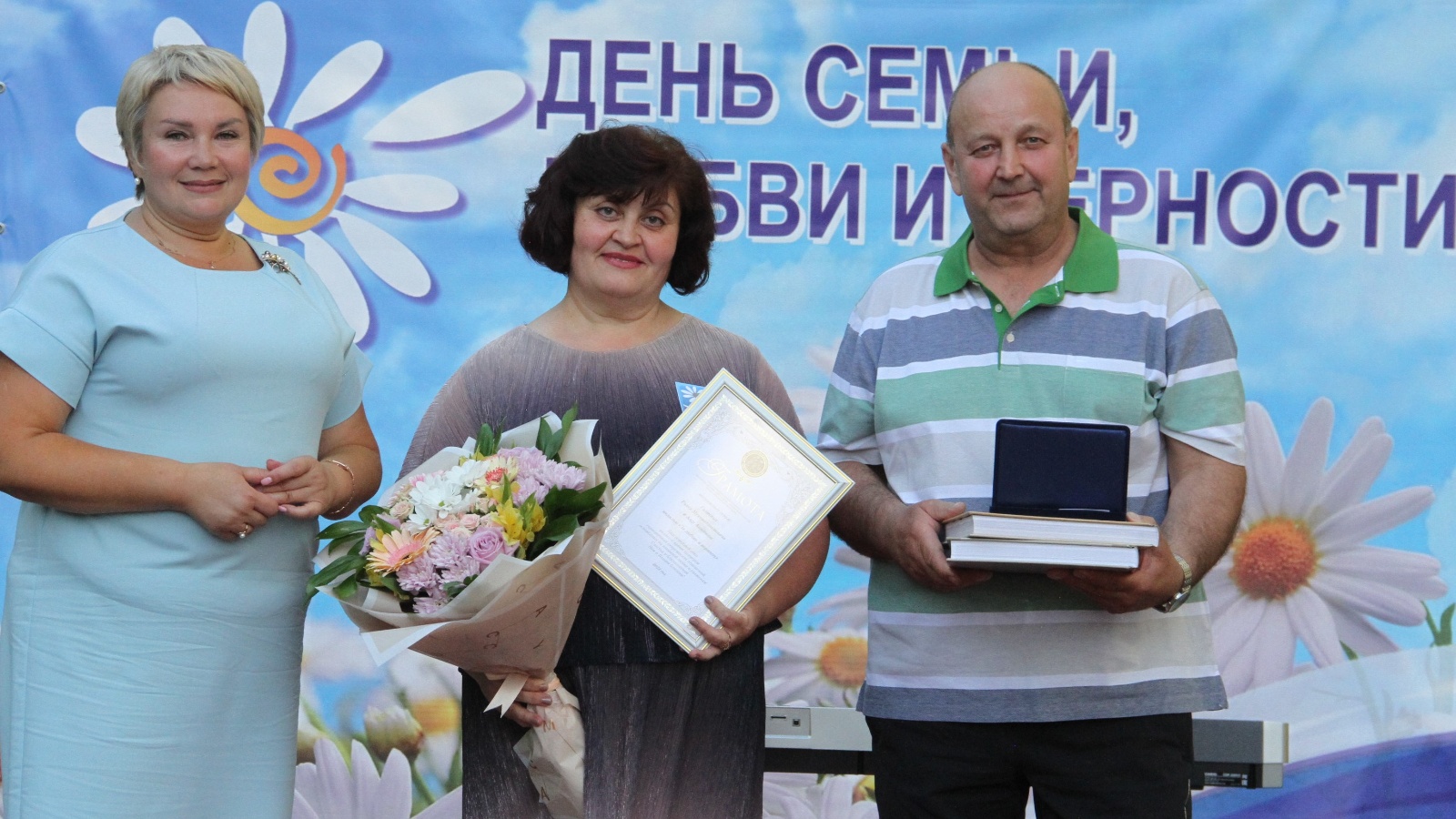 Так же за активную жизненную позицию, достойный пример крепкой ячейки общества и укрепление семейных ценностей были отмечены благодарственным письмом Главы Бугульминского муниципального района Л.Закирова, почетным знаком города и памятными подарками супруги Ганеевы Камиль Ахметназибович и Лилия Рафисовна, как яркие представители трудовой династии нефтяной отрасли, Чернуха Олег Александрович и Ольга Михайловна, чей семейный союз в этом году отметил жемчужную свадьбу, а также многодетная семья Самархановых Дамира Рашитовича и Гузел Ниматовны.