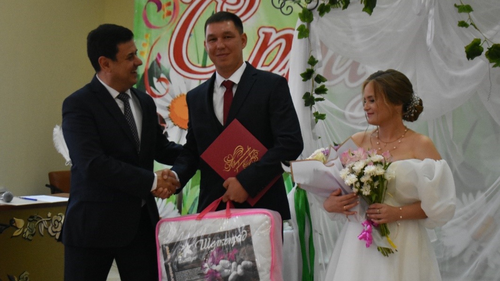 В Пестречинском отделе ЗАГС официально стала мужем и женой сотая пара в этом году. Юбилейными молодоженами под цифрой 100 стали новоиспеченные супруги Ирина Здобяхина и Илья Казаков из села Кощаково. С днем свадьбы молодых торжественно поздравил руководитель исполкома района Альберт Хабибуллин и пожелал молодоженам счастья и гармонии их семейному союзу.