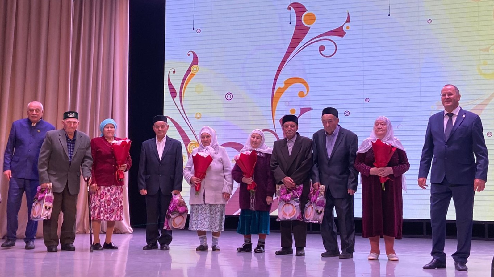 На праздник были приглашены все те, кто внес свой неоценимый вклад в процветание и развитие родного края. А самым кульминационным моментом стало поздравление пяти семейных пар-юбиляров, которые отметили в текущем году свои бриллиантовые, изумрудные и золотые свадьбы. На сцене их тепло поздравили глава Балтасинского района Рамиль Нутфуллин и депутат Государственного Совета РТ Камиль Нугаев, вручив им букеты цветов и памятные подарки. Праздник продолжился праздничным концертом.