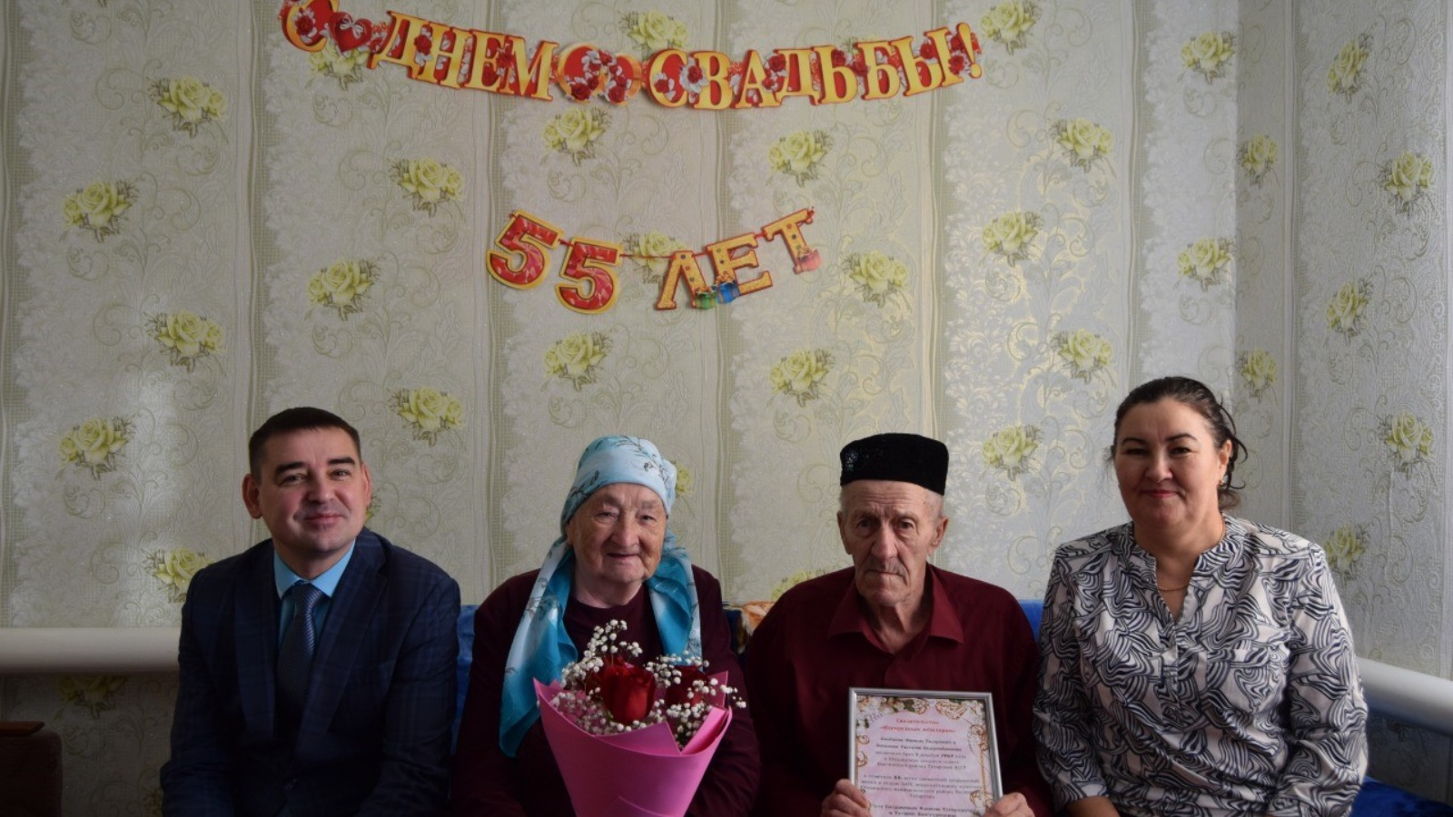 Сегодня, 2 декабря, с этой замечательной датой юбиляров Багдановых Фаниля Тагировича и Тагзиму Базгутдиновну поздравили заместитель руководителя исполнительного комитета Ютазинского муниципального района Республики Татарстан по социальным вопросам Сергей Рузанов и начальник отдела ЗАГС Гузалия Фахуртдинова, вручили им памятные подарки и поздравительные адреса.