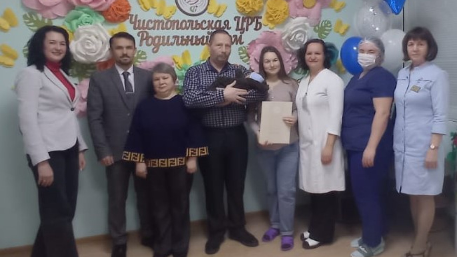 В торжественной обстановке новорожденного и его близких поздравили заместитель руководителя Исполнительного комитета муниципального образования «город Чистополь» Фарход Садиков, начальник отдела ЗАГС Исполнительного комитета Чистопольского муниципального района Республики Татарстан Ильмира Ярмушева, главная акушерка ГАУЗ «Чистопольская ЦРБ» Елена Быкова.