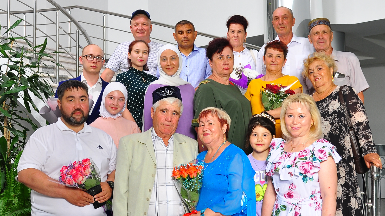 Сегодня во Дворце торжеств семья Сабитовых Анас Исламович и Румия Саидгареевна отметила Сапфировую свадьбу.