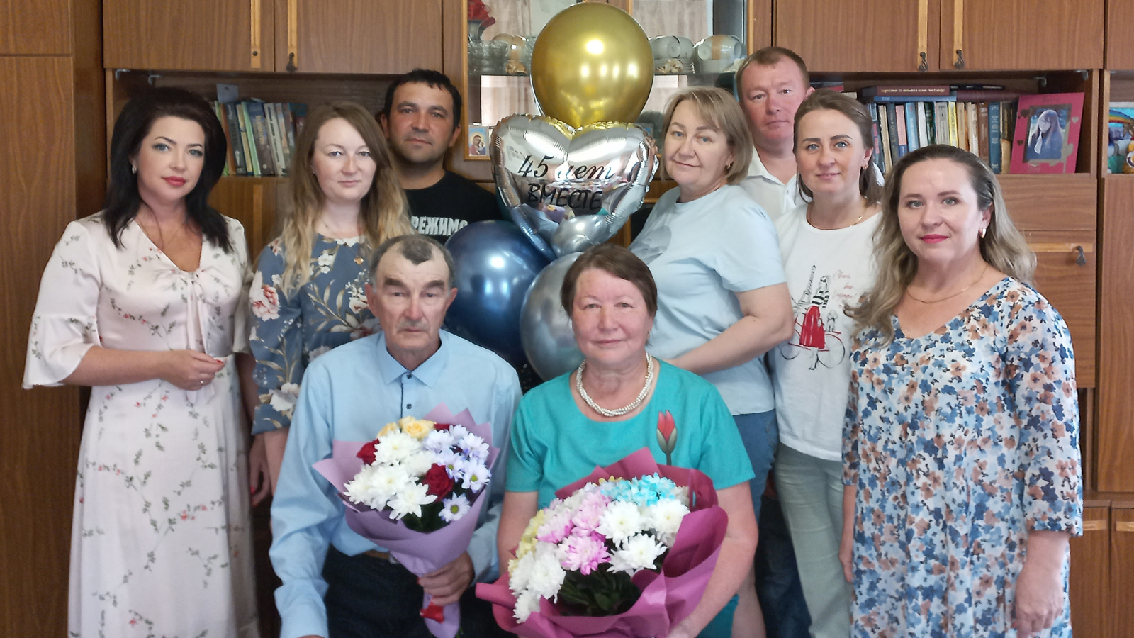 Сегодня семья Николая и Венеры Герасимовых из Черемшанского района отмечает сапфировую свадьбу. Прожившие в браке 45 лет Николай и Венера Герасимовы познакомились в еще школе. 27 мая 1978 году молодые Николай и Венера зарегистрировали свой брак в Новоильмовском поселении.