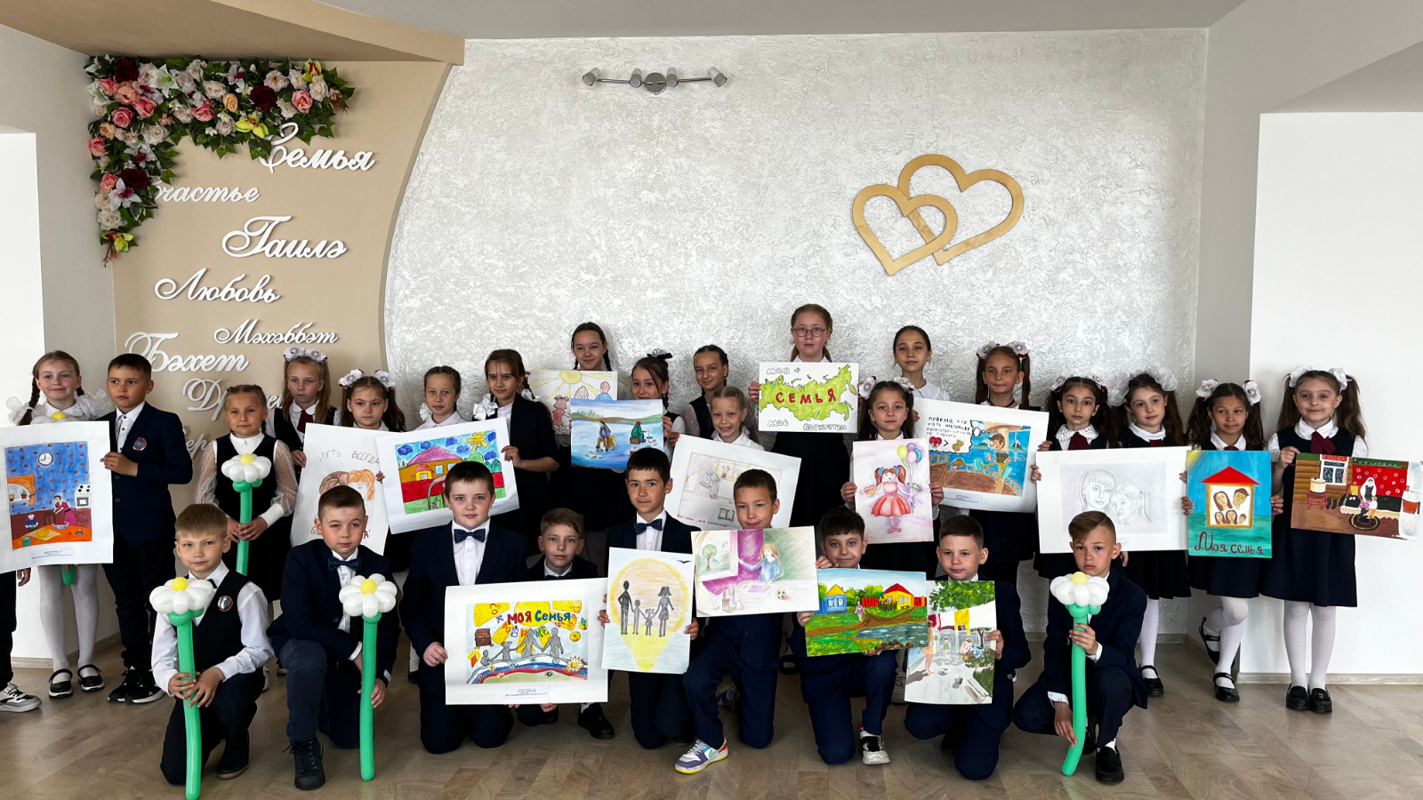 Гостями праздника была многодетная семья Нуриевых и ученики средней школы №1. Дети читали стихи и пели песни про семью, про Родину. Дифиза Нуриева рассказала детям про свою семью, читала стихи.