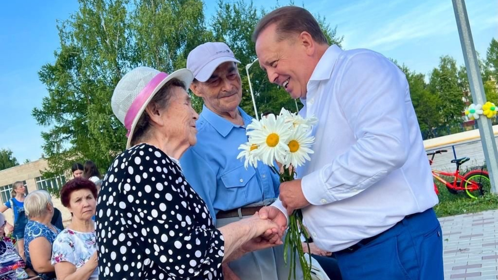 В рамках праздника специалисты Управления ЗАГС Нижнекамска провели юбилеи супружеской жизни для трех пар, проживающих в этом микрорайоне. Депутат Госдумы Айдар Раисович Метшин поздравил семью Бишимовых с 45-летием совместной жизни, семью Исхаковых с 53-летием супружества и семью Несмеянкиных с 67-летием со дня заключения брака. Все юбиляры получили памятные подарки.