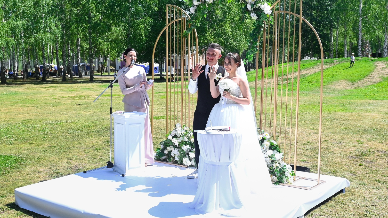 Время меняется, и мы вместе с ним. В День семьи, любви и верности, молодоженов города ждал сюрприз от Управления ЗАГС Нижнекамского муниципального района. В честь праздника торжественная регистрация брака проводилась в парке "Семья".