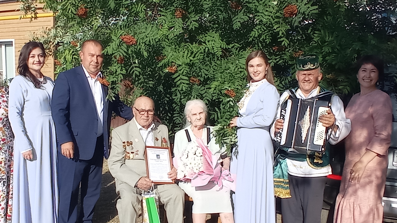 Супружеской паре вручены Благодарственное письмо Главы района, подарки, цветы.
