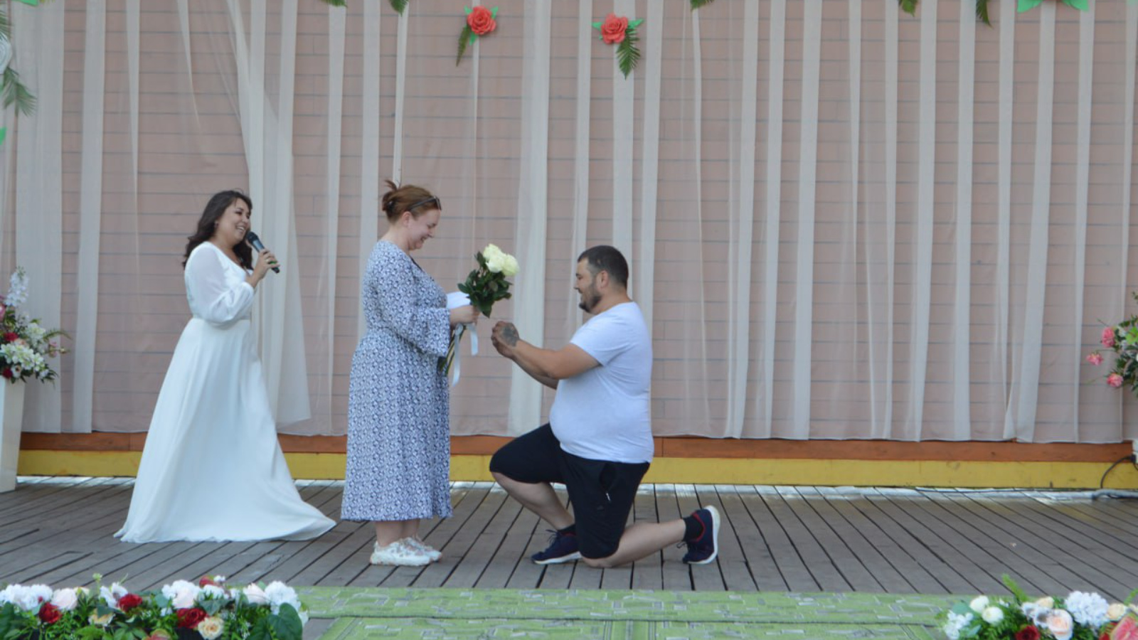 06 июля 2023 года в сквере «Театральный» Нурлатского района прошло празднование Дня семьи, любви и верности. В завершении праздника Исламбаев Иксан сделал предложение своей девушке Анне. Молодые встречаются полгода и Иксан решил, что настало время стать им семьей. А для начала надо спросить любимую, согласна ли она. Молодой человек обратился к организаторам праздника, все с радостью согласились помочь парню. На импровизированной ромашке молодые срывая лепестки узнавали друг о друге, выполняли шуточные задания. Срывая последний лепесток Анна и не предполагала, какой вопрос ее ожидает. Иксан встав на колено, протянул ей приготовленную шкатулку с кольцом, взял микрофон и произнес заветные слова. Сердце Анны, конечно же дрогнуло и она произнесла заветное - ДА! Событие сопровождалось громкими аплодисментами, добрыми словами ведущего.