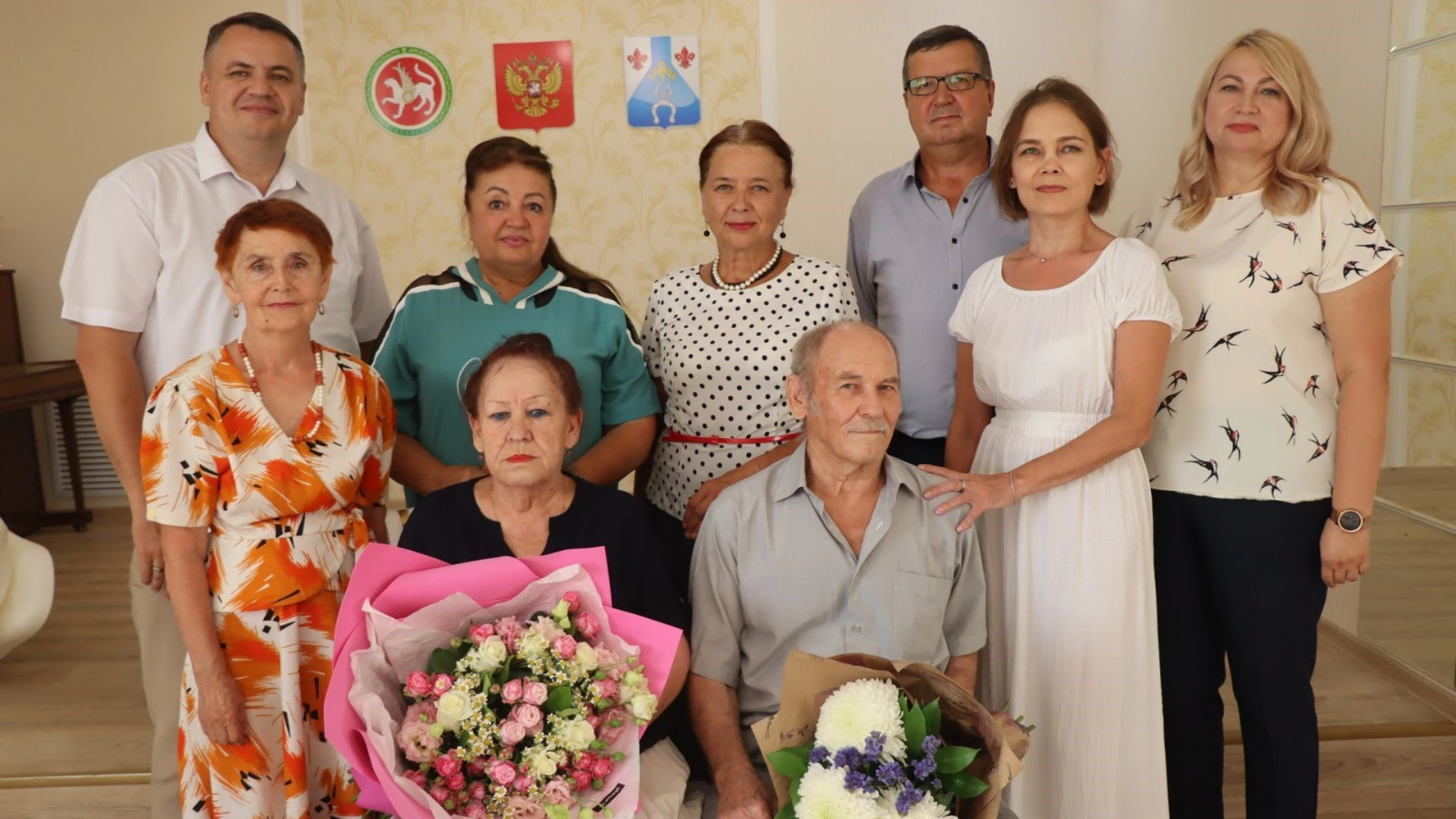 От имени главы Благодарственное письмо вручил юбилярам заместитель руководителя исполкома района по социальным вопросам Дамир Ханзаров, пожелал супружеской паре крепкого здоровья, счастья и благополучия. Также юбиляров поздравили начальник Отдела ЗАГС Татьяна Алексеева и руководители первичной профсоюзной организации АО «Аммоний» и клуба шахматистов Райхан Сабирзянов и Альфия Садыкова, председатели Совета ветеранов (пенсионеров) и ТОС «Химик» Лариса Кривилёва и Альфия Талыпова, родные и близкие.