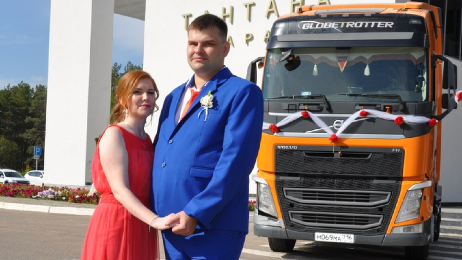 Челнинские молодожёны Иван и Инна Петровы приехали в ЗАГС на большом грузовике. Они украсили тягач Volvo праздничными лентами и устроили на его фоне фотосессию, чем привлекли большое внимание окружающих. Жители города восхищались свадебным тягачом и его пассажирами, их радостно приветствовали, водители сигналили, а самые любопытные горожане фотографировали. Жених Иван работает водителем, поэтому в качестве своего свадебного транспортного средства решил использовать свой тягач.