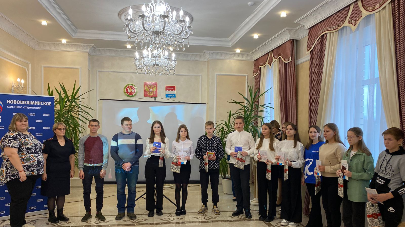 В преддверии празднования Дня народного единства и Конституции Республики Татарстан в Секторе ЗАГС Новошешминского района прошло праздничное мероприятие - торжественное вручение главного документа - паспорта нашим юным гражданам Российской Федерации, с приглашением участников Специальной Военной Операции, находящихся в отпуске и волонтеров, объединивших всех в единые группы помощи участникам Специальной Военной Операции и их семьям.