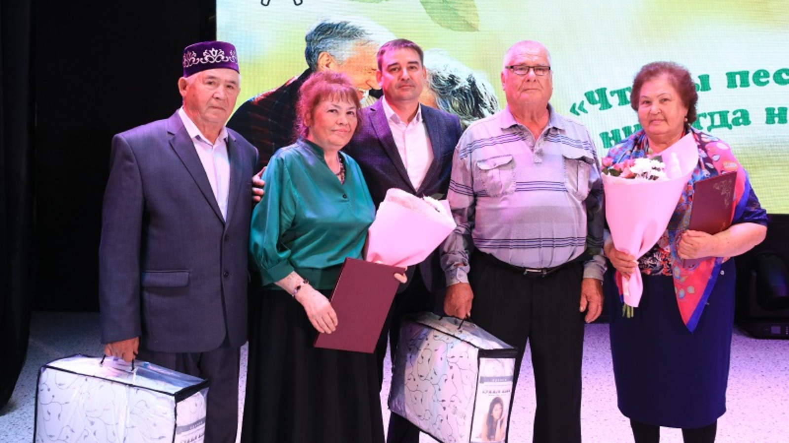 В рамках декады пожилых людей в Ютазинском районном Доме культуры артисты и творческие коллективы подарили свои лучшие концертные номера. От имени руководства Ютазинского муниципального района виновников торжества поздравил заместитель руководителя исполнительного комитета района по социальным вопросам Сергей Рузанов. Он выразил добрые напутствия ветеранам производства и поблагодарил их за несомненные заслуги в избранной профессии. Сергей Рузанов и начальник отдела ЗАГС Гузалия Фахуртдинова выполнили приятную миссию по чествованию супружеских пар Галиевых из села Дым-Тамак и Хайруллиных из поселка Уруссу, которые в этом году отметили 55 и 50-летний юбилей со дня бракосочетания. Такие семейные пары как Альберт и Гульзания Галимовы, Идрис и Аниса Хайруллины служат несомненным примером для современного поколения.