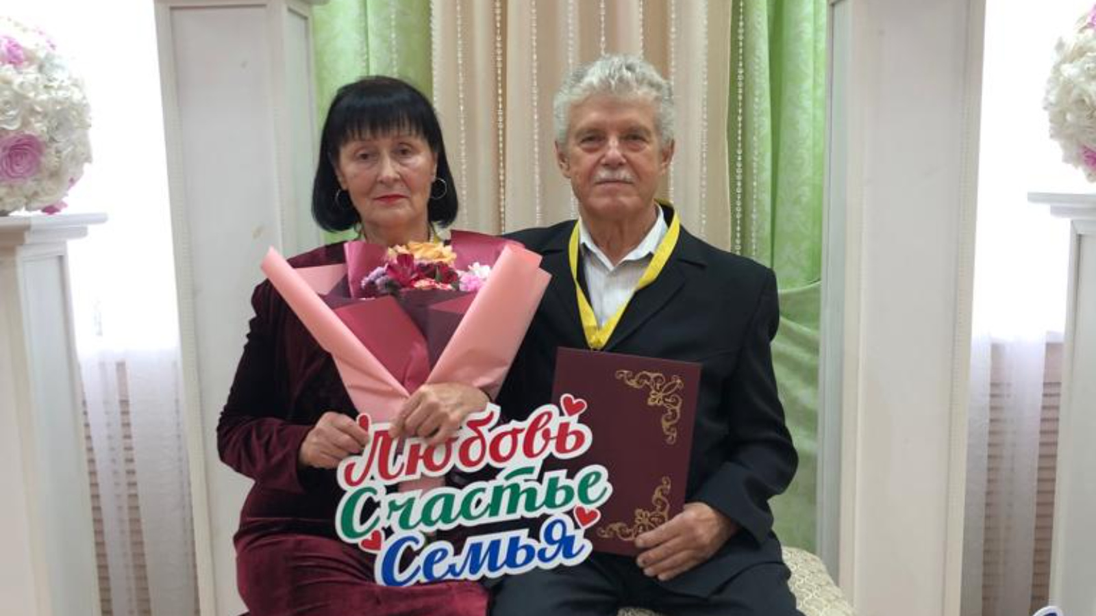 В этот день, как и много лет назад, счастливые юбиляры вошли в зал под звуки свадебного марша Мендельсона. Супруги поставили свои подписи в Почетной книге чествования юбиляров супружеской жизни и по традиции обменялись юбилейными свадебными медалями в знак бесконечной любви. Прекрасное событие разделили родные юбиляров, присутствовавшие в день торжества.