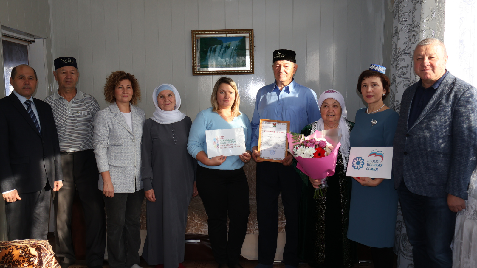 7 ноября, в рамках проекта «Крепкая семья», Всероссийского социального про-семейного проекта «Семья-основа мира» и Года национальных культур и традиций Глава Сармановского района Фарит Хуснуллин поздравил юбиляров семейной жизни Фаниса и Назилю Миннуллиных с изумрудной свадьбой. Свои добрые пожелания и поздравления юбилярам выразили заместитель руководителя Исполнительного комитета, председатель Совета женщин района Индира Сахипова, начальник отдела ЗАГС Гульчачак Валишина, руководитель Исполнительного комитета Сармановского сельского поселения Лилия Шарипова, председатель Совета ветеранов Асыляр Харисов родные и близкие. Юбилярам было вручено Благодарственное письмо Главы муниципального района и памятные подарки с пожеланиями крепкого здоровья, любви и уважения родных и близких на долгие годы.