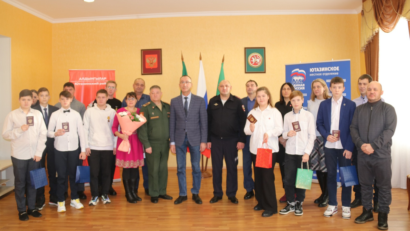 В ходе мероприятия глава Ютазинского муниципального района Аяз Шафигуллин и начальник полиции отдела внутренних дел МВД России в Ютазинском районе Айваз Зияров вручили паспорта гражданина Российской Федерации юным землякам, достигшим 14-летнего возраста.