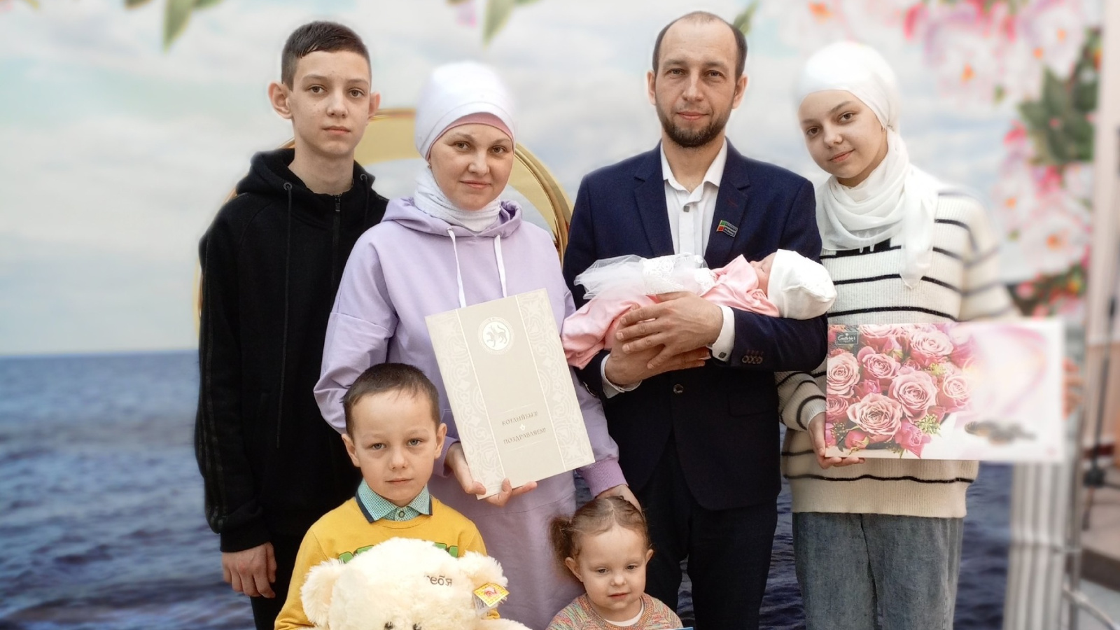 31 марта в отделе ЗАГС Елена Халикова в торжественной обстановке вручила счастливым родителям первый государственный документ свидетельство о рождении, поздравительный адрес от имени Раиса Республики и подарок от имени молодоженов Ильдана и Алины Талиповых, заключивших брак 11 января 2025 года