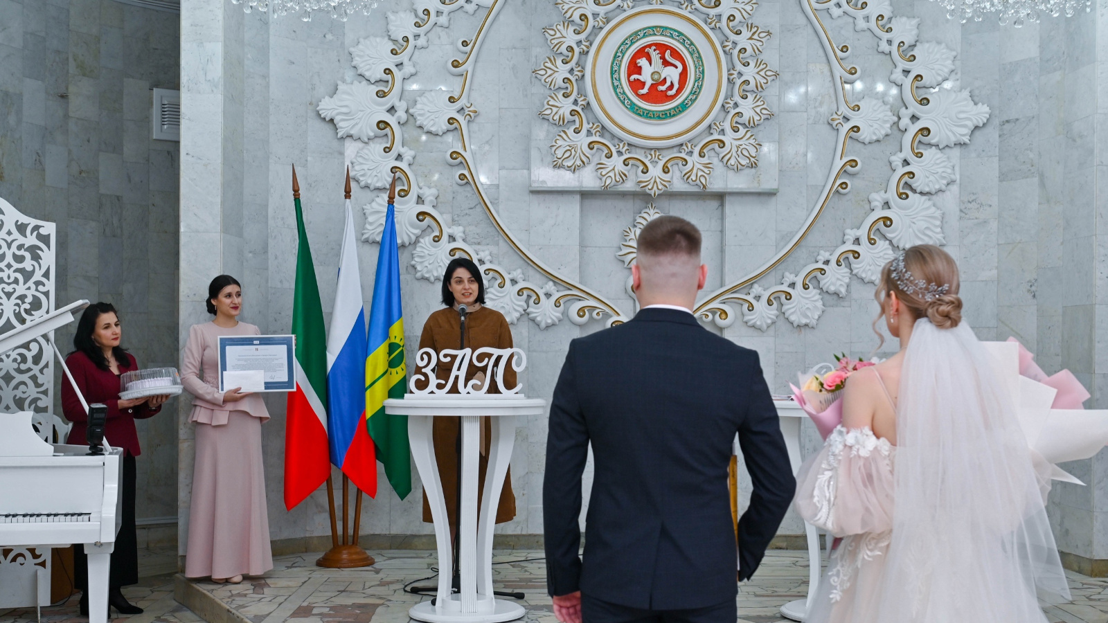 В канун Дня защитника Отечества в стенах ЗАГСа Нижнекамского района состоялась торжественная регистрация брака участника специальной военной операции. Эта пара стала 100-й, зарегистрировавшей брак в этом году, что придало моменту еще большую символичность.
